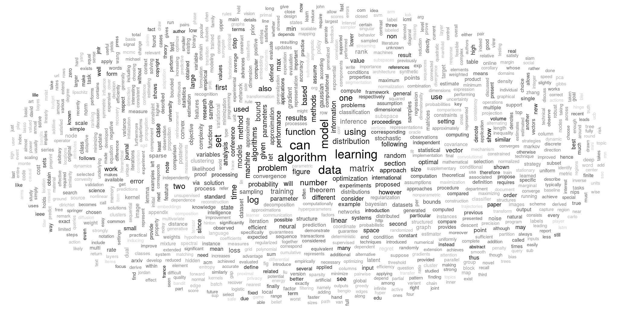 A word cloud constructed from 1000 terms relating to ICML (2015).