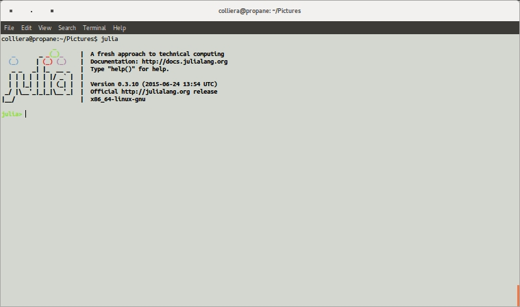 I’m running Ubuntu 15.04, so this will be rather specific. Installation was extremely simple (handled entirely by the package manager) and it looks like other platforms are similarly straightforward (check the Downloads page). I will be using Julia version 0.3.10.