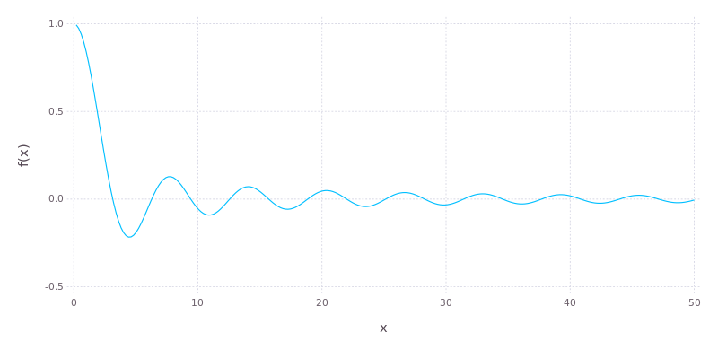 dampedsin = plot([x -> sin(x) / x], 0, 50)