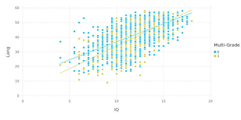 Geom.point, Geom.smooth(method=:lm), Guide.colorkey("Multi-Grade"))