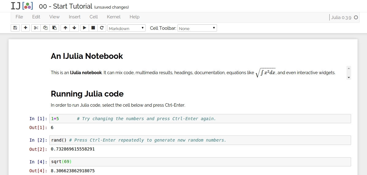 Open the tutorial folder and then select the 00 - Start Tutorial notebook. It’s worthwhile browsing through the other parts of the tutorial too, which cover topics like plotting and metaprogramming.