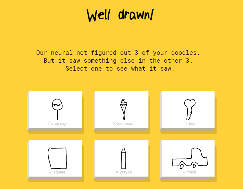 Results from the Quick, Draw! neural network.