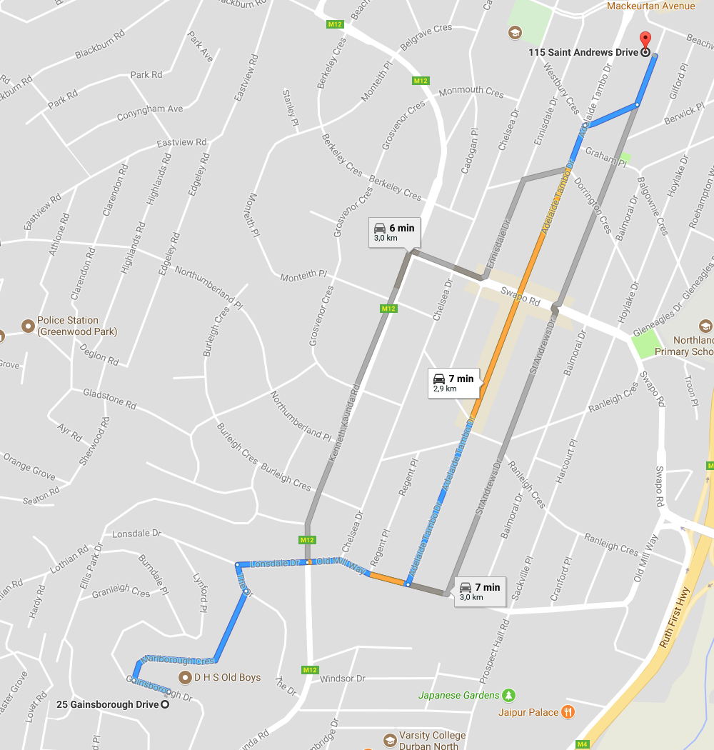 Let’s consider two locations in my old neighbourhood: