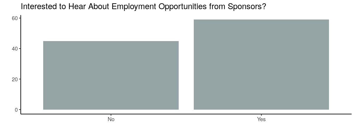 From the perspective of our sponsors it’s useful to note that just over half of the attendees were interested to hear about employment opportunities.