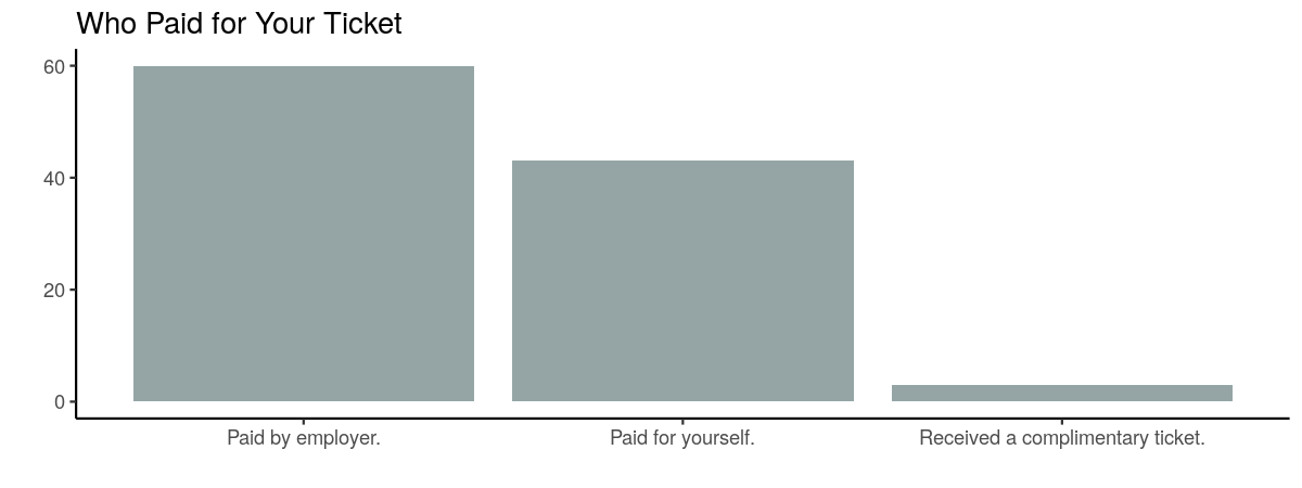 Perhaps how much one is willing to pay depends on who is actually paying? Roughly 60% of the people who attended this year had tickets purchased by their employer. The rest either paid for themselves or received complimentary tickets.