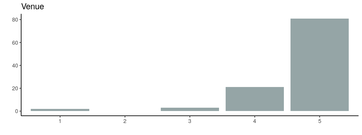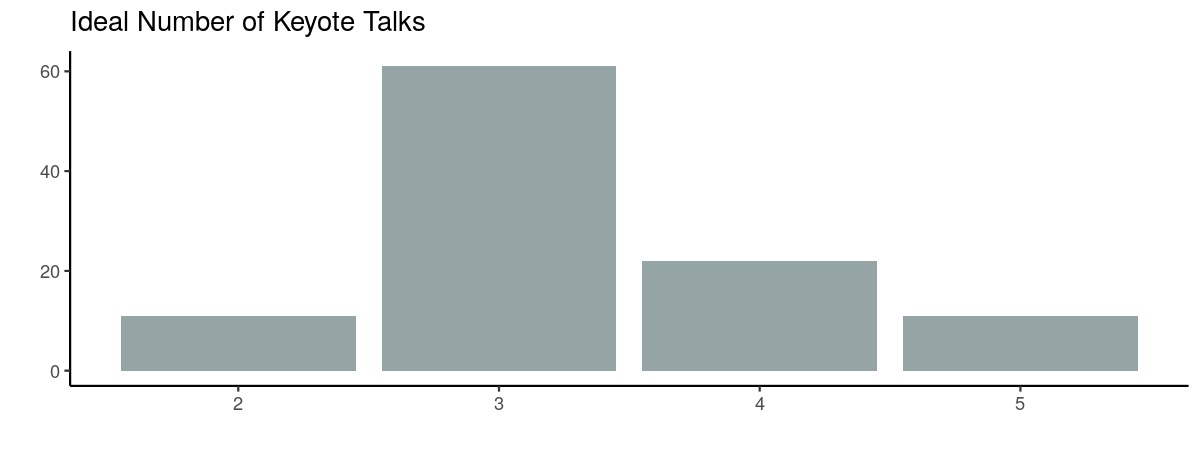 It looks like we hit the sweet spot with three keynote speakers. We might drop this to two next year though to leave more space in the programme for local speakers. We’ve already secured two phenomenal keynotes for next year: Maëlle Salmon and Stephanie Kovalchik.