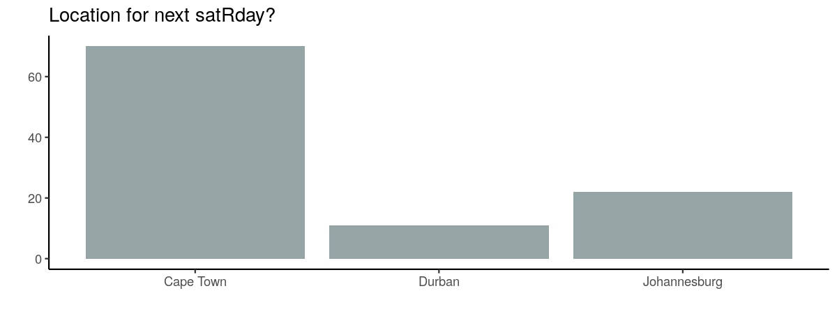 We recently announced the second satRday (Cape Town) conference scheduled to take place on 17 March 2018. Obviously we want this to be bigger and better than this year’s event, so we are paying careful attention to the feedback that we received from the first event.