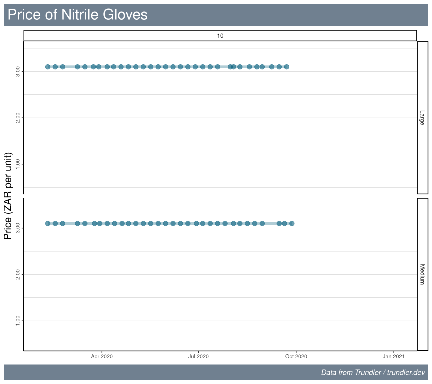 Nitrile gloves were only available at Clicks until the end of September. However, again, for the period of this analysis the prices have remained constant.