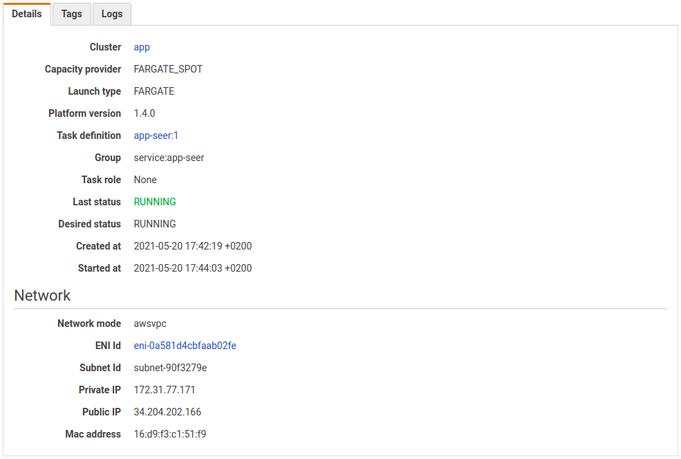 - There’s a log group associated with the task,