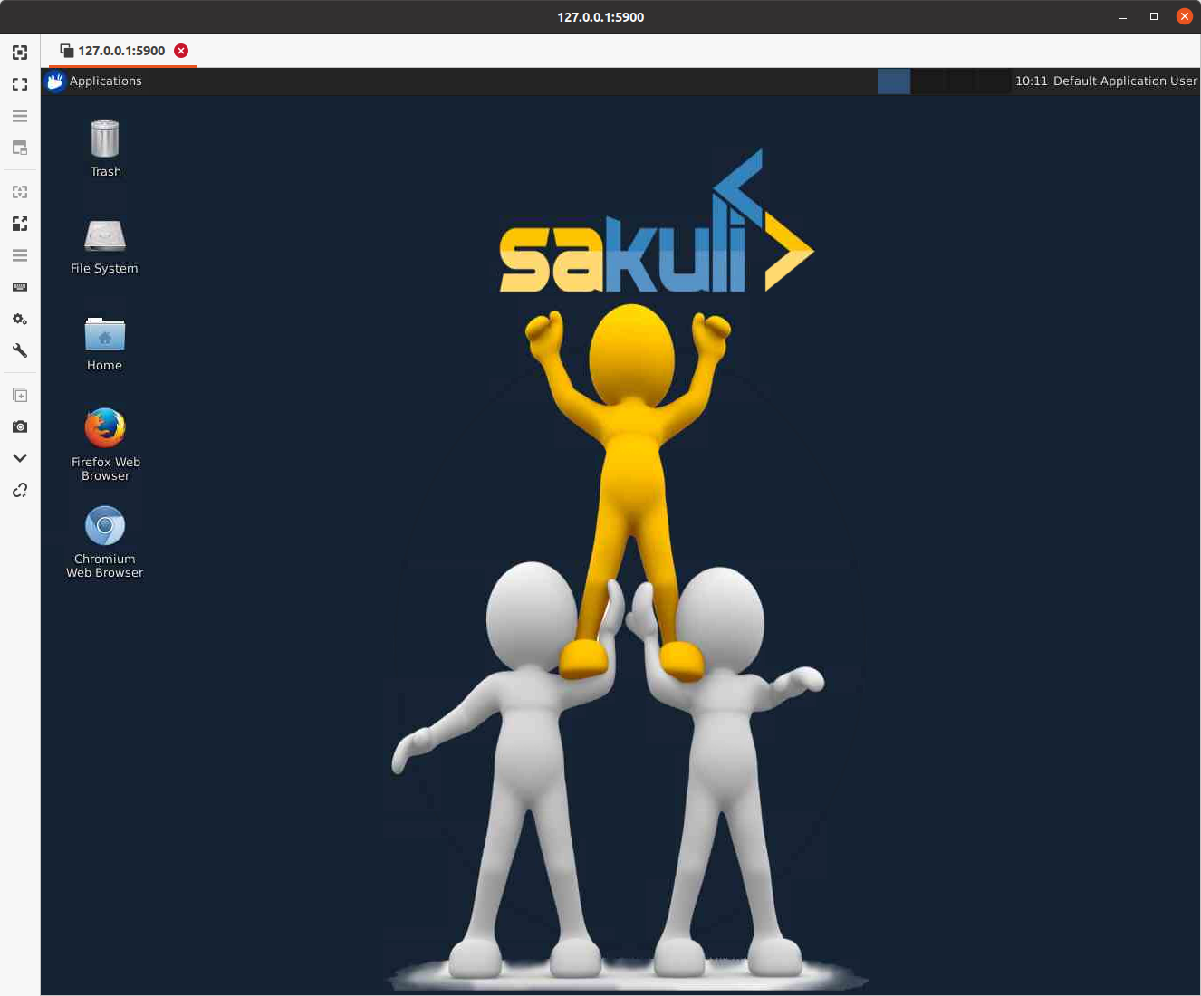 Connect via VNC client to 127.0.0.1:5900. The password is "vncpassword".