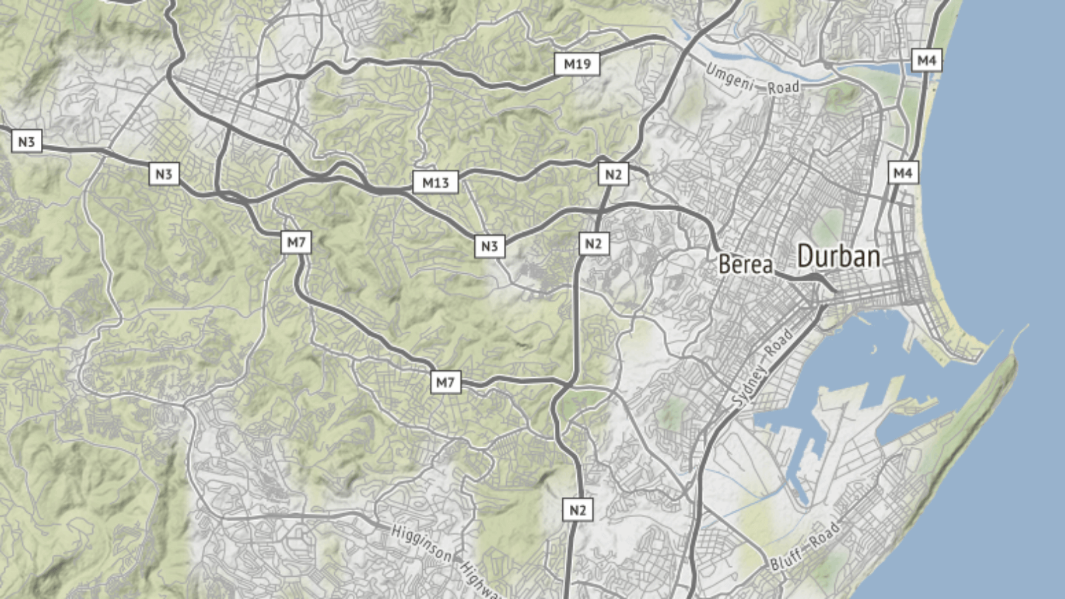 How does that look? This is the Durban map with a terrain-lines base and a terrain-background overlay at 50% opacity.
