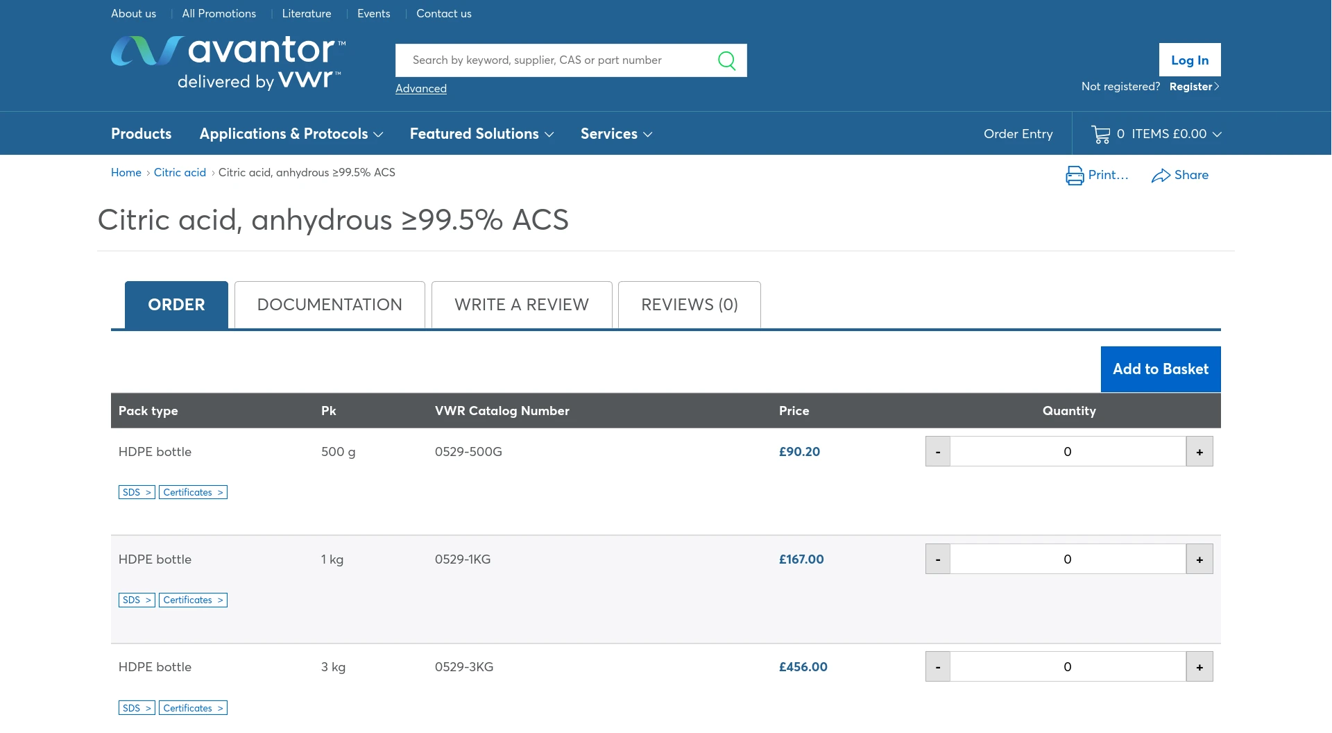 scraper = AvantorScraper("725074/citric-acid-anhydrous-99-5-acs")