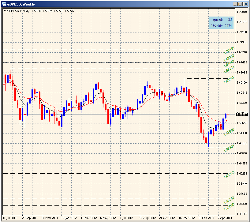 Sample output from v1.2 of my support-resistance indicator is shown below for the weekly chart of GBPUSD.