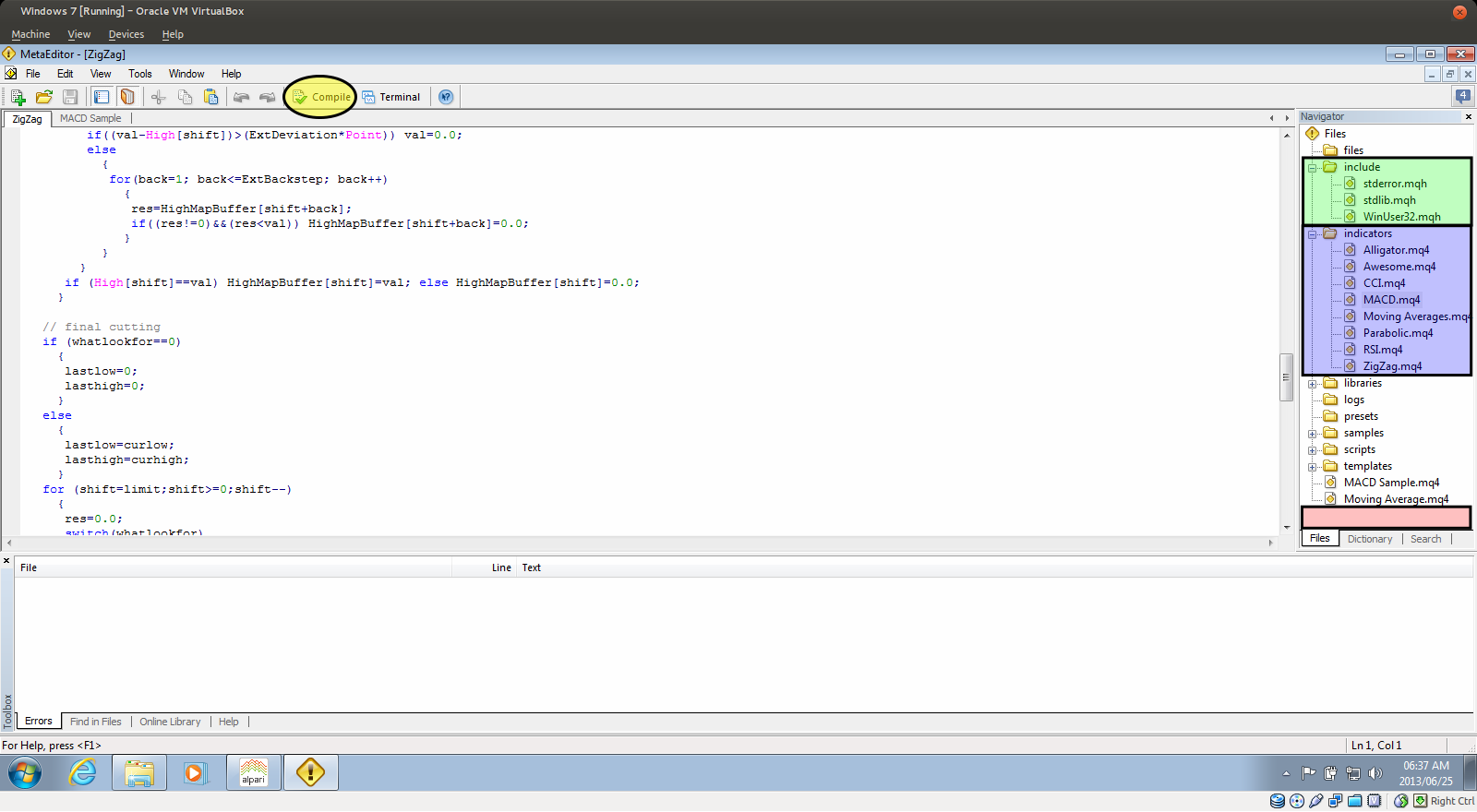 Compiling Indicators and Expert Advisors