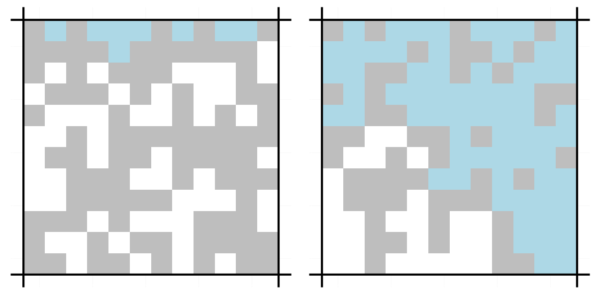 The grid on the left does not percolate while the one on the right does.