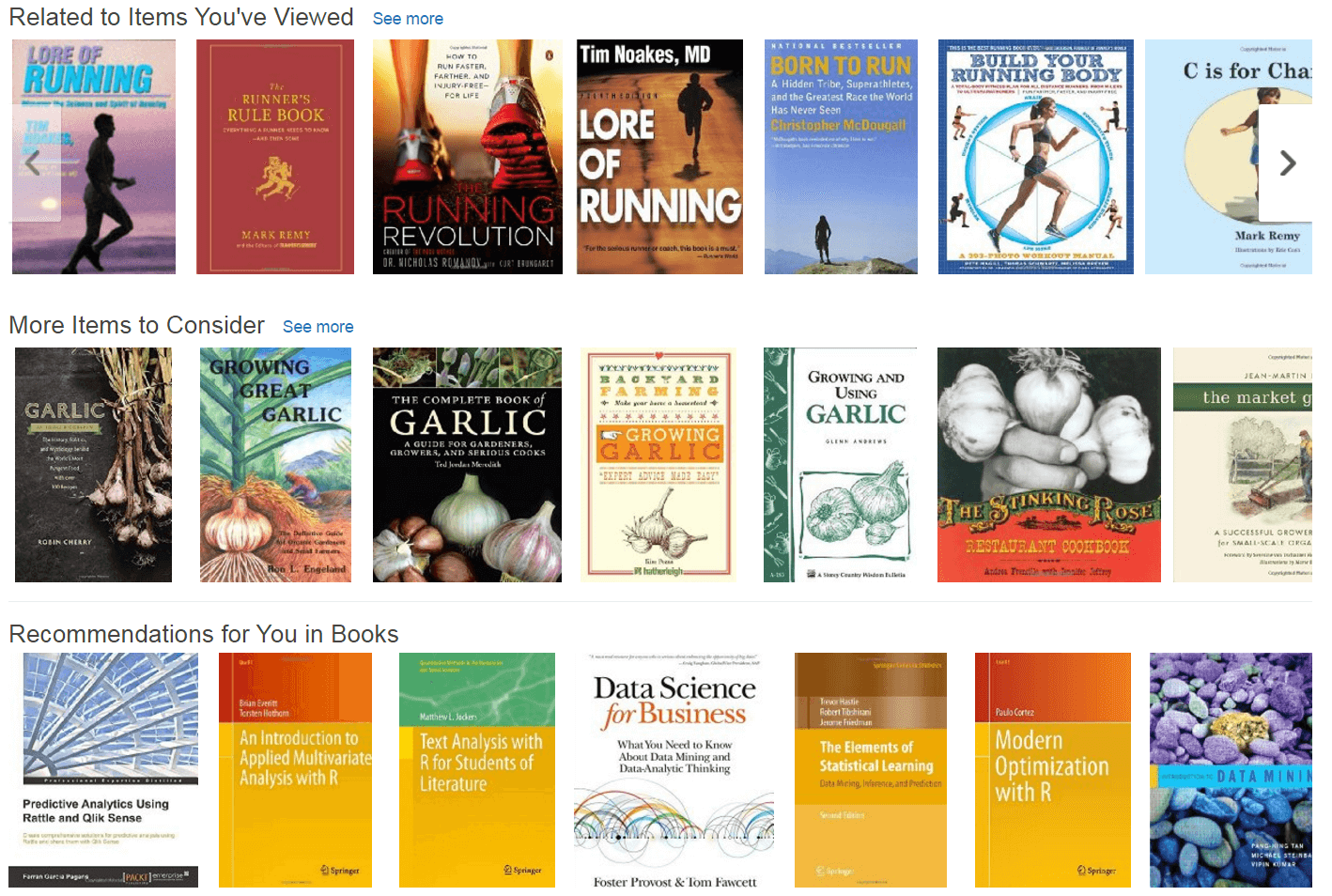 Amazon seems to really understand me. Or, at least, my reading preferences. Running, garlic, data. Yup, that pretty much sums me up.