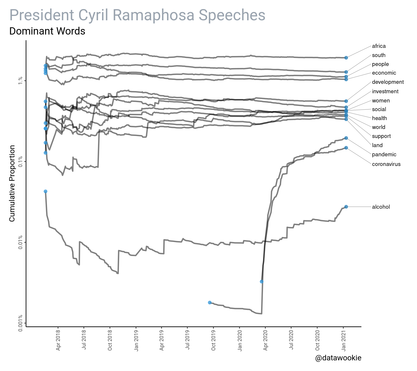 The transcripts for the South African President’s speeches are available here. I’ve just added these data to the {saffer} package.