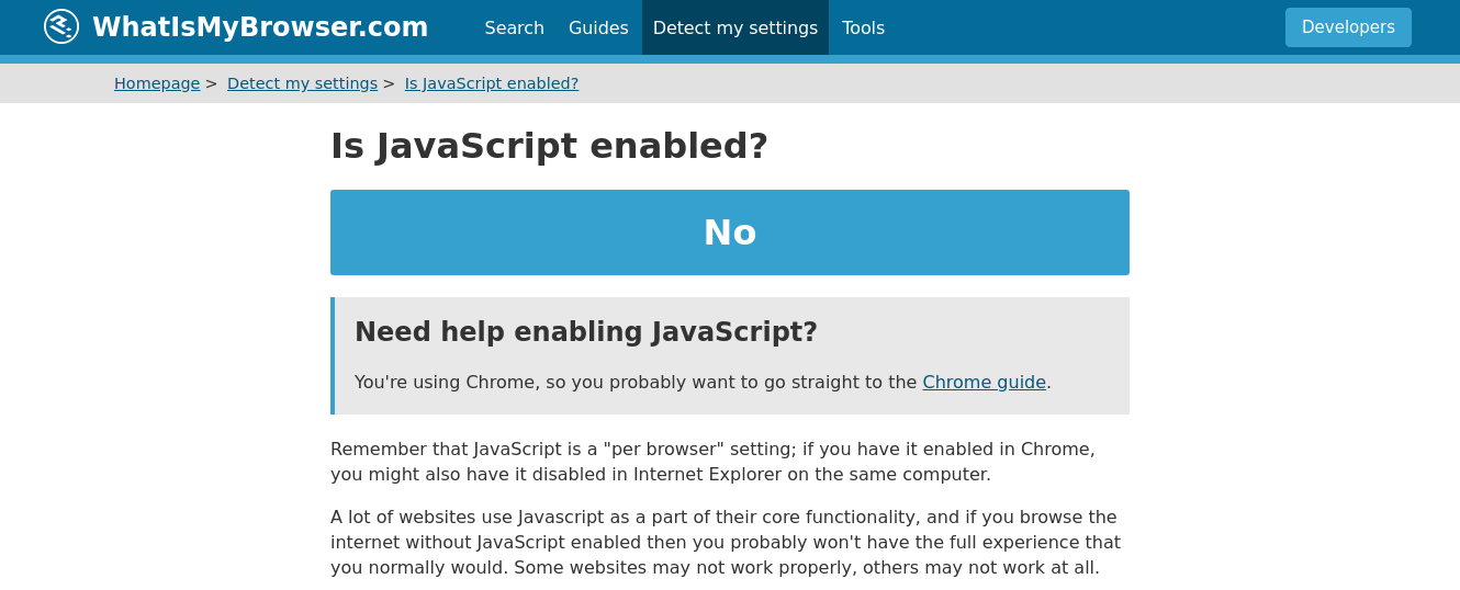 )Head over to https://www.whatismybrowser.com/detect/is-javascript-enabled to check.