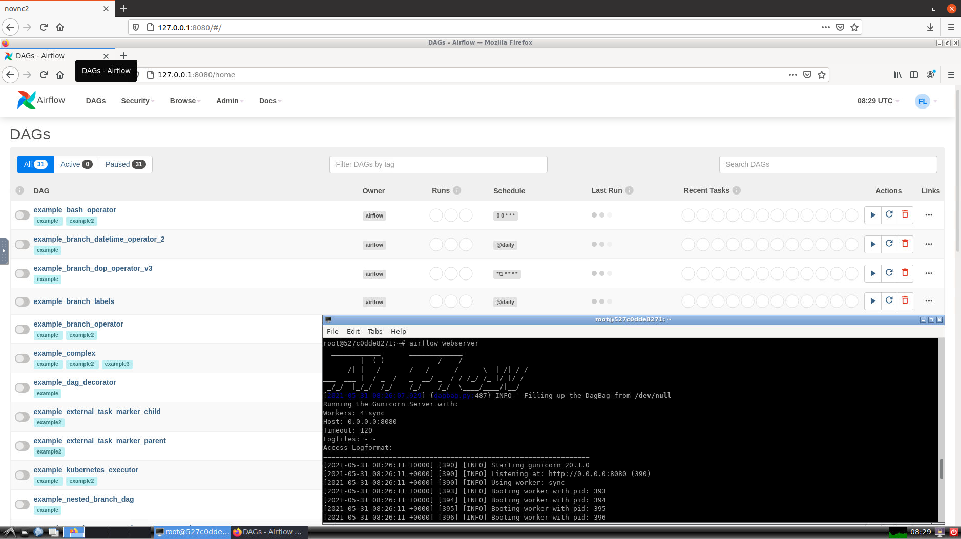 There are various Docker images which package Airflow. What I’m setting up here is somewhat different though: a desktop environment in Docker which includes Airflow.